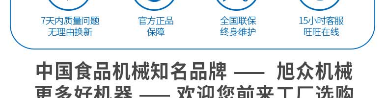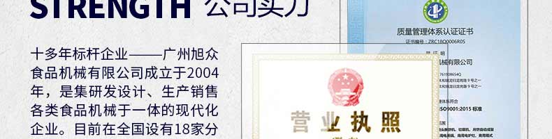 廣州旭眾食品機(jī)械有限公司是一家集科研開發(fā),生產(chǎn)設(shè)計,營銷服務(wù)為一體的現(xiàn)代化生產(chǎn)企業(yè)。現(xiàn)代化生產(chǎn)車間,精湛制造技術(shù),所產(chǎn)機(jī)械歷經(jīng)市場重重考驗,不斷贏得海內(nèi)外客戶的贊譽(yù)。