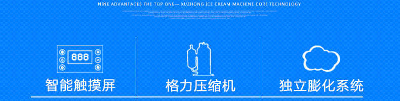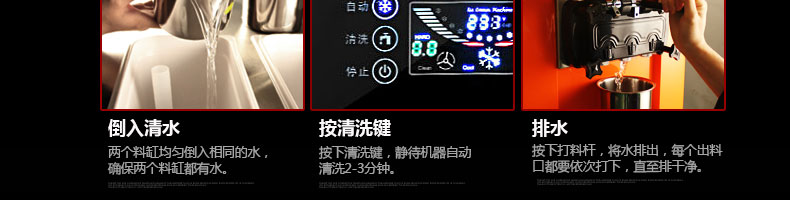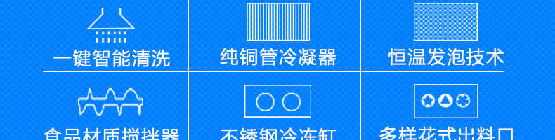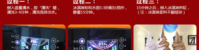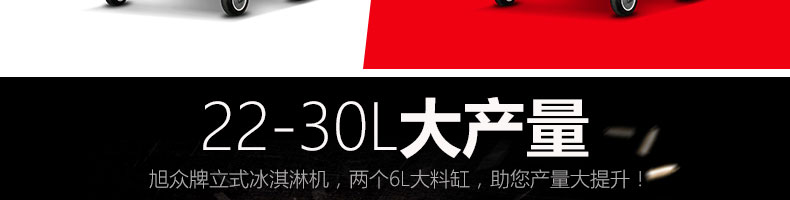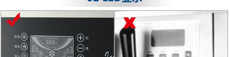 BQL-828立式冰淇淋機,1.選用國際牌壓縮機,輔以旭眾精湛工藝,大大縮短冰淇淋成型時間,高效節能;2.全新液晶智能觸控面板,簡單明了,多功能易操作;3.全新升級專業膨化泵,膨化率高,產量增加30%;4.一鍵清洗功能,省時方便;5.主要部件采用不銹鋼材質,時尚美觀,持久耐用;6.先進的機械攪拌系統,機器運行穩定可靠,低噪音,產品口感爽滑細嫩。