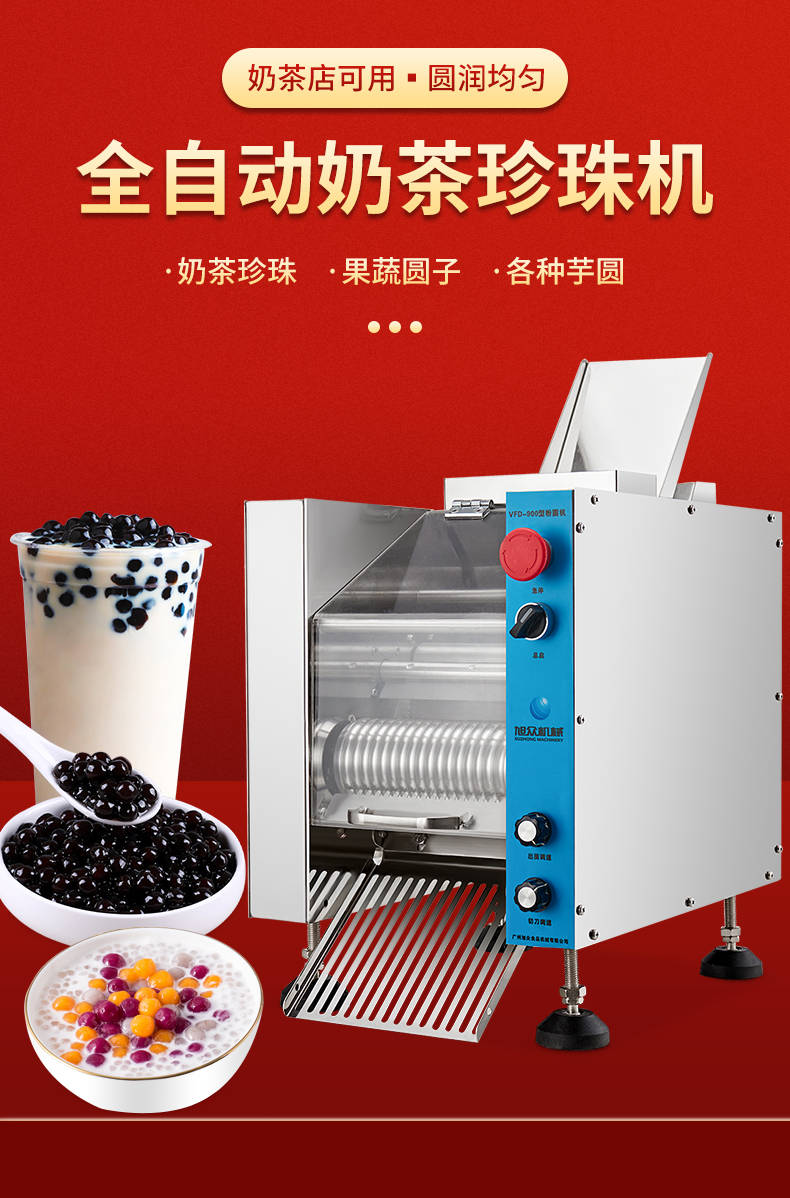 VFD-900珍珠奶茶機,奶茶店、甜品店可用。可生產奶茶珍珠,果蔬圓子,無餡湯圓,水晶湯圓,各種芋圓。不占空間、體積小、重量輕,桌面上的小奶茶珍珠機。告別手工繁瑣的工序,省時省力,輕松解決手工麻煩,成本高等一系列問題