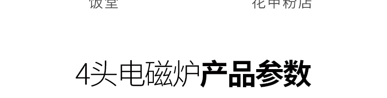 四頭柜式電磁爐,10檔調(diào)節(jié),滿足各種烹飪。3500W火力十足,輕松選擇合適火力。同時(shí)工作互不干擾單獨(dú)磁爐控制面板,設(shè)置不同大小檔數(shù),同時(shí)工作,互不干擾。