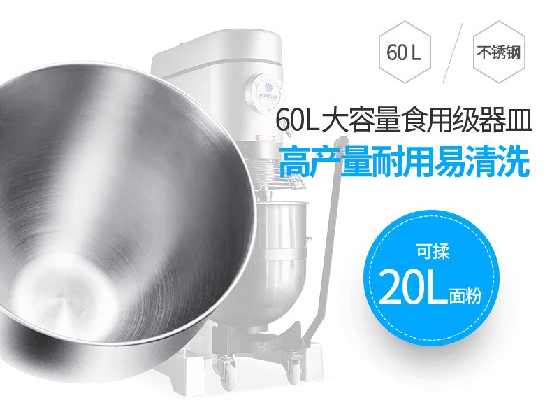 多功能攪拌和面機,創業神器,開創廚房新時代。多功能高效率,讓您省心省力又省事。360行星軌跡攪打系統,攪拌均勻保持口感。3000W大功率強勁電機,穩定高效使用長久。