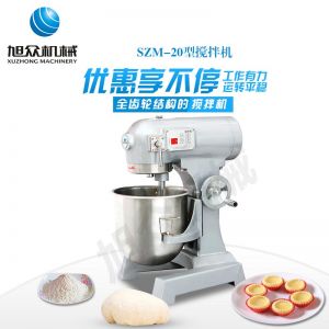 SZM-20型四功能攪拌機,可用于攪拌奶油、蛋糕液、餡料及和制面團等操作。打蛋攪拌機等作攪拌食料、揉和面團之用,是生產優質糕點的理想設備,適用于酒店、飯店、學校部門、面包屋以及食品廠家。
