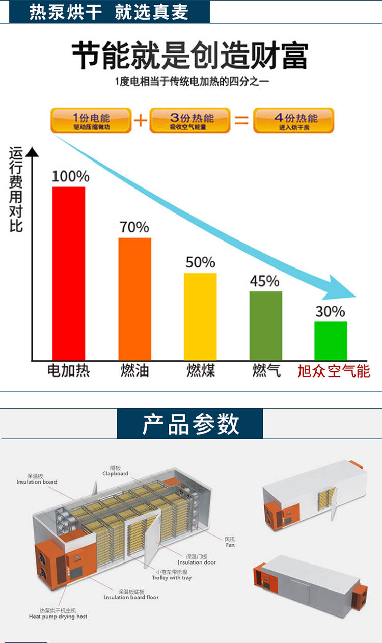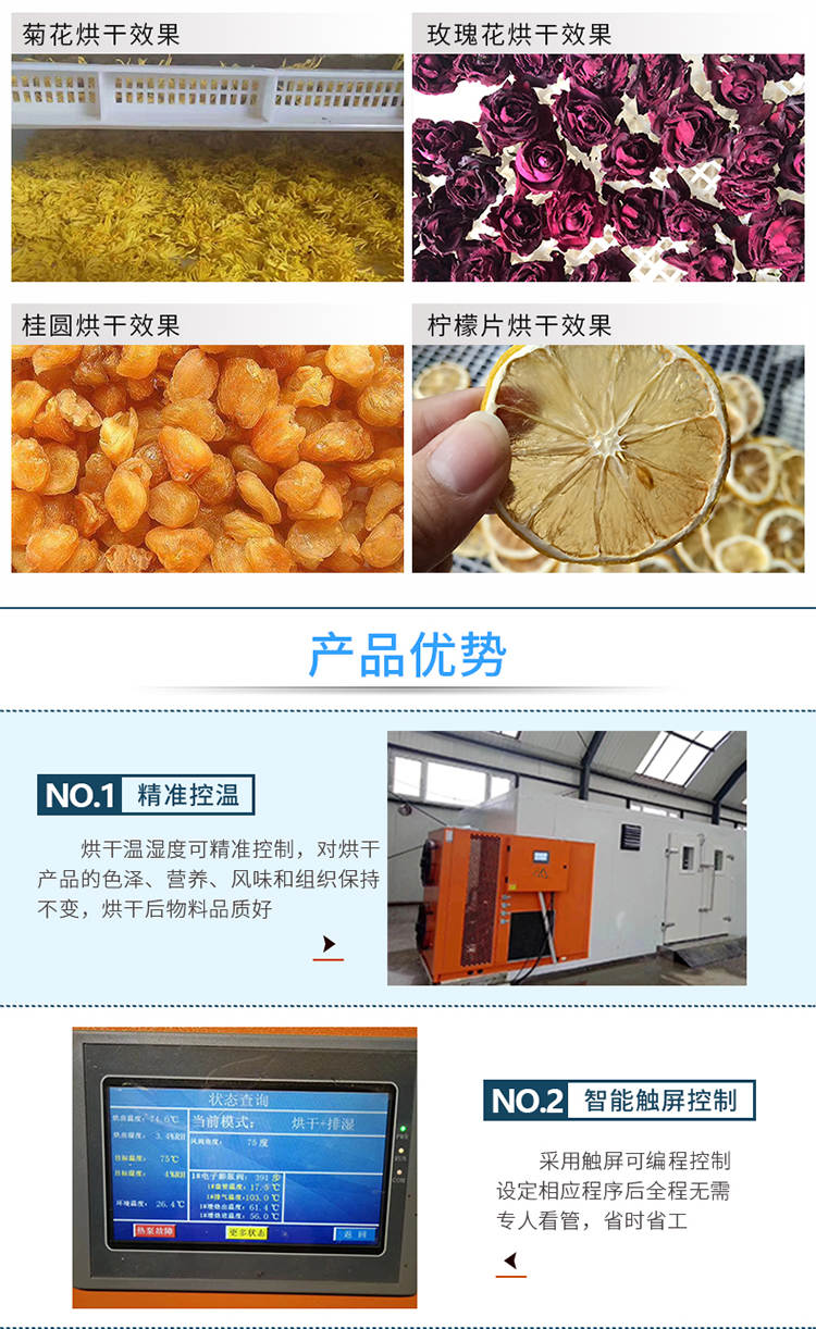 030S-T-KD06空氣能烘干機,可編程調制烘干過程,精準控制溫濕度,不受天氣限制可全天候24小時運行。干凈衛生,密閉式烘干房設計不與外界污濁空氣接觸,保證干燥物料烘干品質。高效節能,不用專人看守,可實現一人同時管理多間烘房減少人工費用