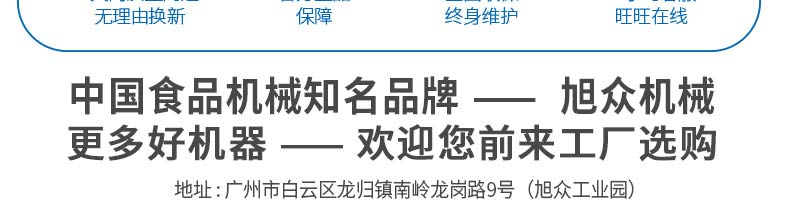 廣州旭眾食品機械有限公司是一家集科研開發,生產設計,營銷服務為一體的現代化生產企業。現代化生產車間,精湛制造技術,所產機械歷經市場重重考驗,不斷贏得海內外客戶的贊譽。