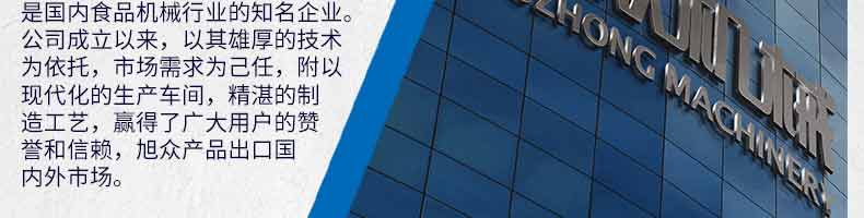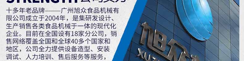 廣州旭眾食品機械有限公司是一家集科研開發,生產設計,營銷服務為一體的現代化生產企業。現代化生產車間,精湛制造技術,所產機械歷經市場重重考驗,不斷贏得海內外客戶的贊譽。