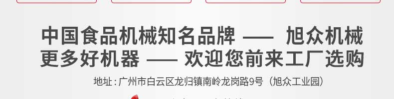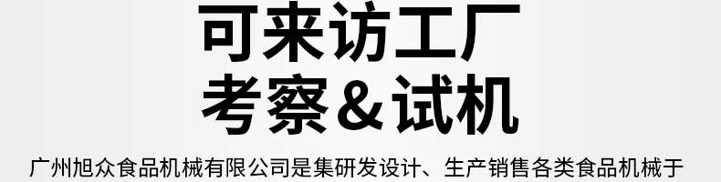 廣州旭眾食品機械有限公司是一家集科研開發,生產設計,營銷服務為一體的現代化生產企業。現代化生產車間,精湛制造技術,所產機械歷經市場重重考驗,不斷贏得海內外客戶的贊譽。
