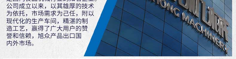 廣州旭眾食品機械有限公司是一家集科研開發,生產設計,營銷服務為一體的現代化生產企業。現代化生產車間,精湛制造技術,所產機械歷經市場重重考驗,不斷贏得海內外客戶的贊譽。