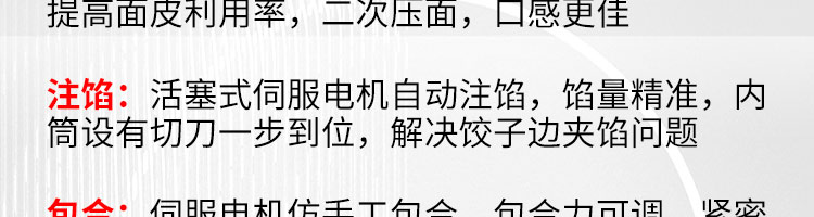 JGB-10型一體式餃子機,制皮成型一體餃子機,科技化生產/人性化設計。餃型可蒸、可炸、可煮,可適應不同場合的客戶需求。功能、智能一體,以自動化科技與過硬質量貼心服務。