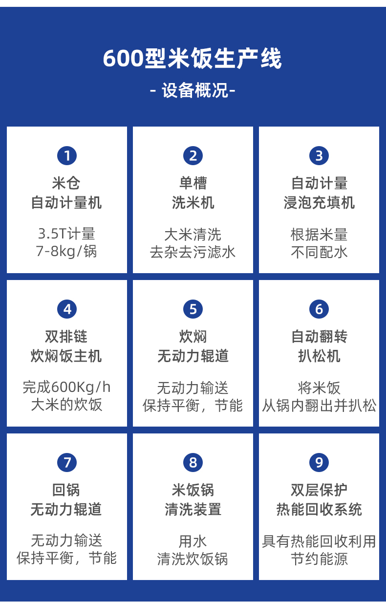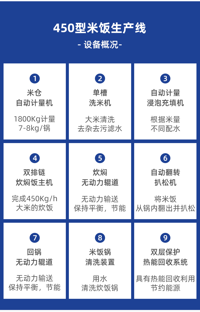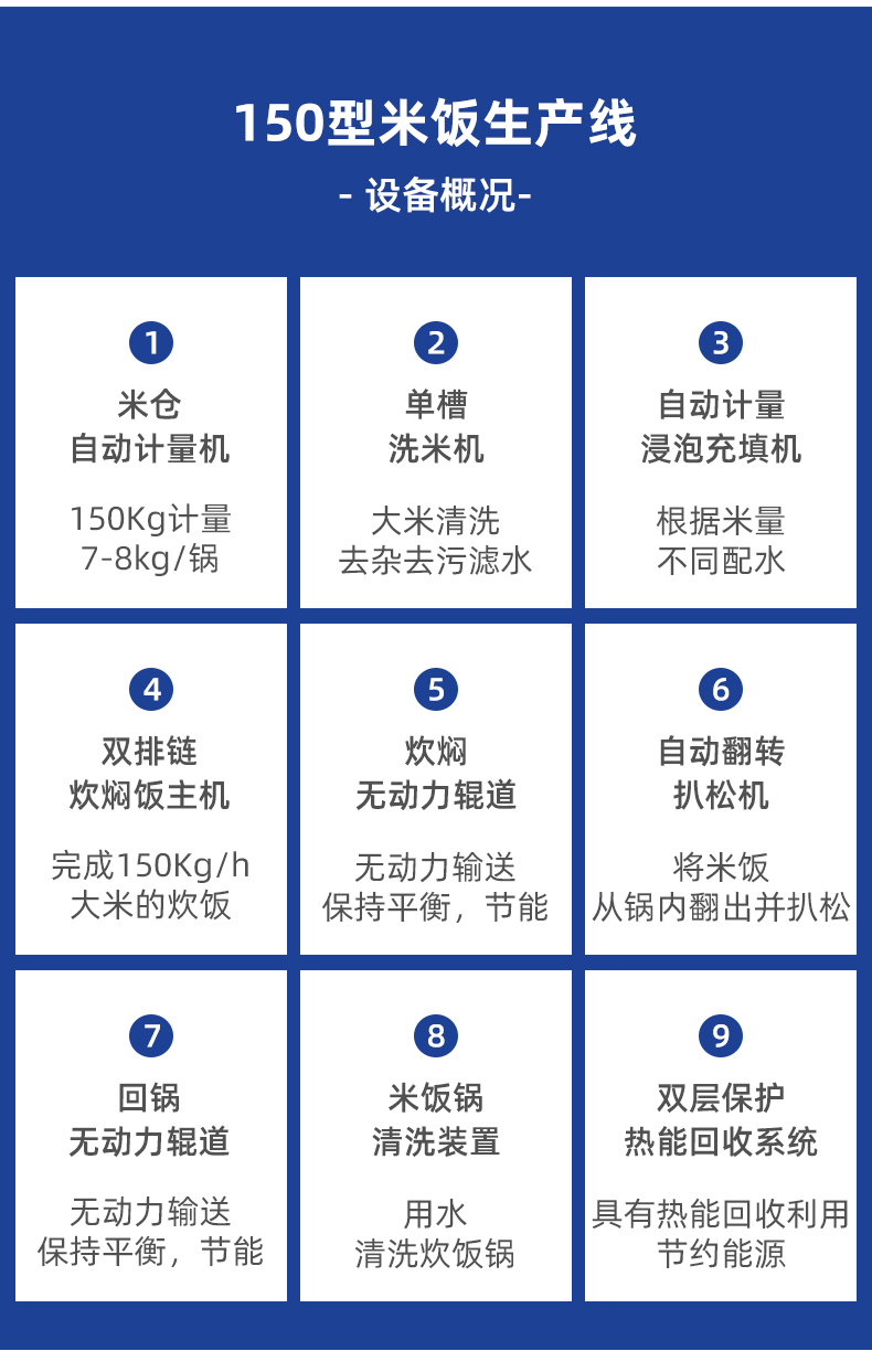 米飯生產(chǎn)線,主要結(jié)構(gòu):不銹鋼箱體,密閉不銹鋼飯盤,自動加熱循環(huán)系統(tǒng)。適用對象:大型米飯加工中心、快餐公司、大型配餐中心企事業(yè)單位、學(xué)校食堂、釀造企業(yè)等。實力大咖商用好幫手。提供培訓(xùn)、指導(dǎo)和工藝傳授,品牌服務(wù)有保障。