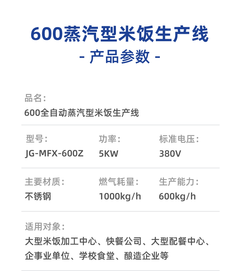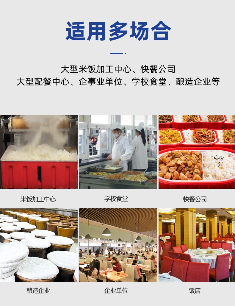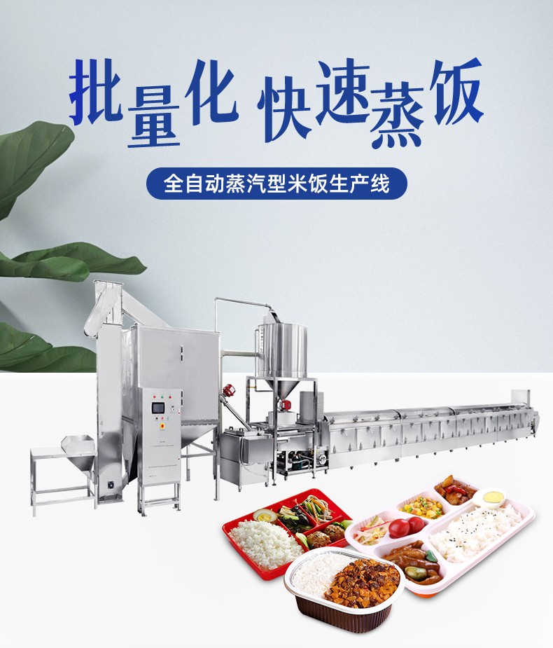 全自動(dòng)蒸汽型米飯生產(chǎn)線,全電腦控制系統(tǒng),從大米儲(chǔ)存到燜飯的全過(guò)程采用電腦控制,自動(dòng)化作業(yè),降低勞動(dòng)強(qiáng)度。實(shí)現(xiàn)全自動(dòng)生產(chǎn),多功能,一機(jī)多用,可以用于在蒸制各種食物實(shí)現(xiàn)全自動(dòng)生產(chǎn),無(wú)需人工服務(wù)。