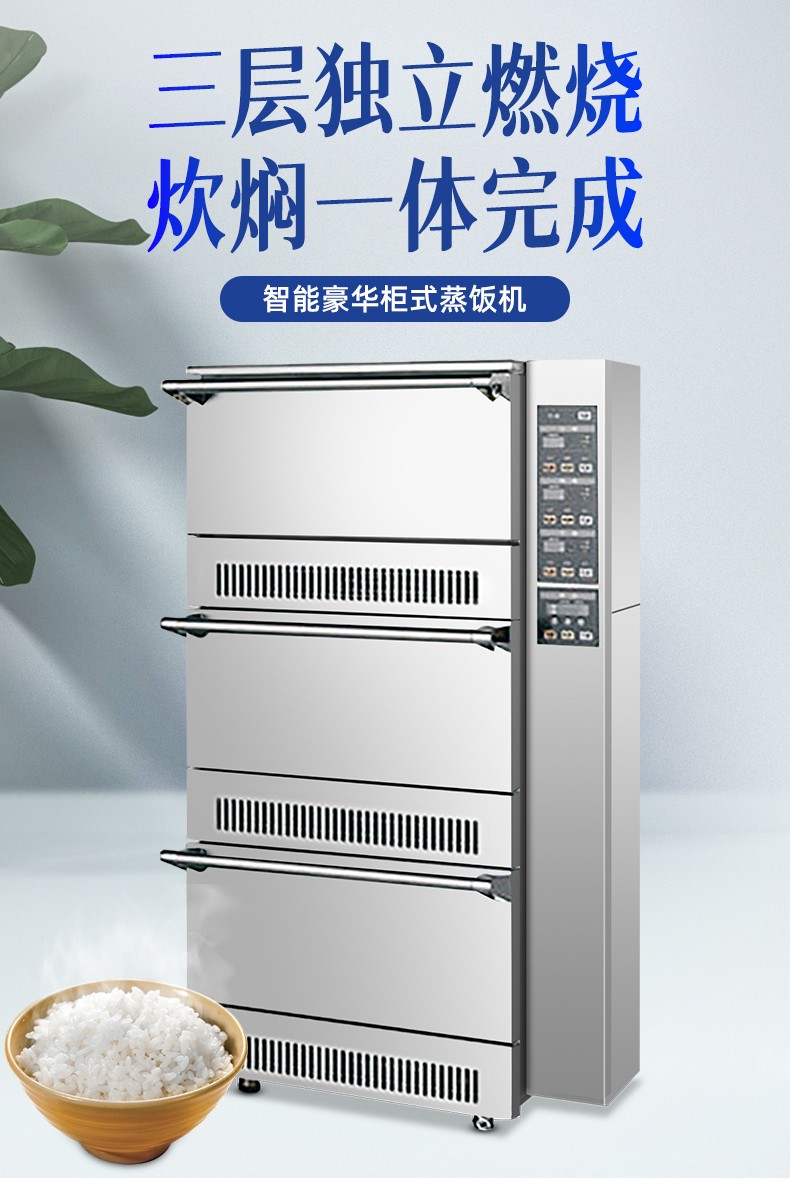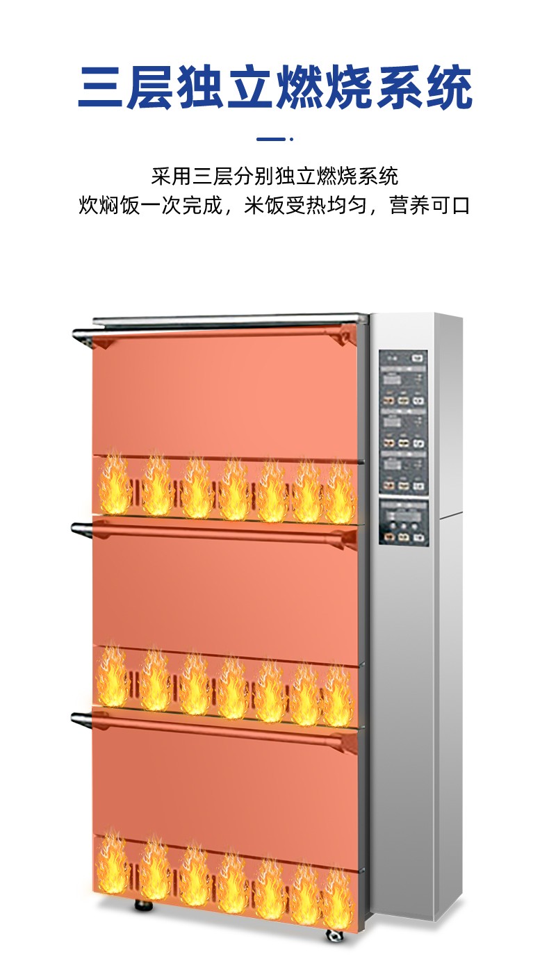立式米飯機(jī),主要結(jié)構(gòu):主要由全不銹鋼柜體、上下三層結(jié)構(gòu)加原鋁鎂合金模鑄鍋體、微電腦自動控制系統(tǒng)燃燒系統(tǒng)、熄火保護(hù)系統(tǒng)等組成。適用對象:主要用于生產(chǎn)加工高品質(zhì)米飯的壽司店、高端酒店西餐廚房、茶餐廳以及高端的快餐門店等