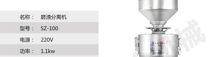 SZ-100-磨渣分離機系列,適用于把豆制品磨碎分離漿和渣;適用于豆制品廠、飲食服務(wù)業(yè)、食堂、飯店及個體商戶使用。