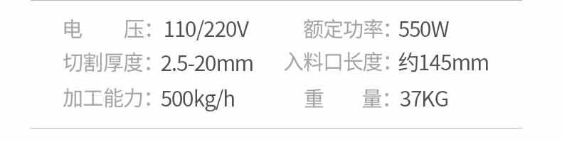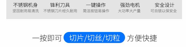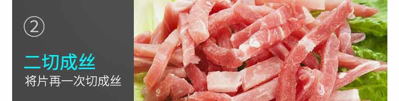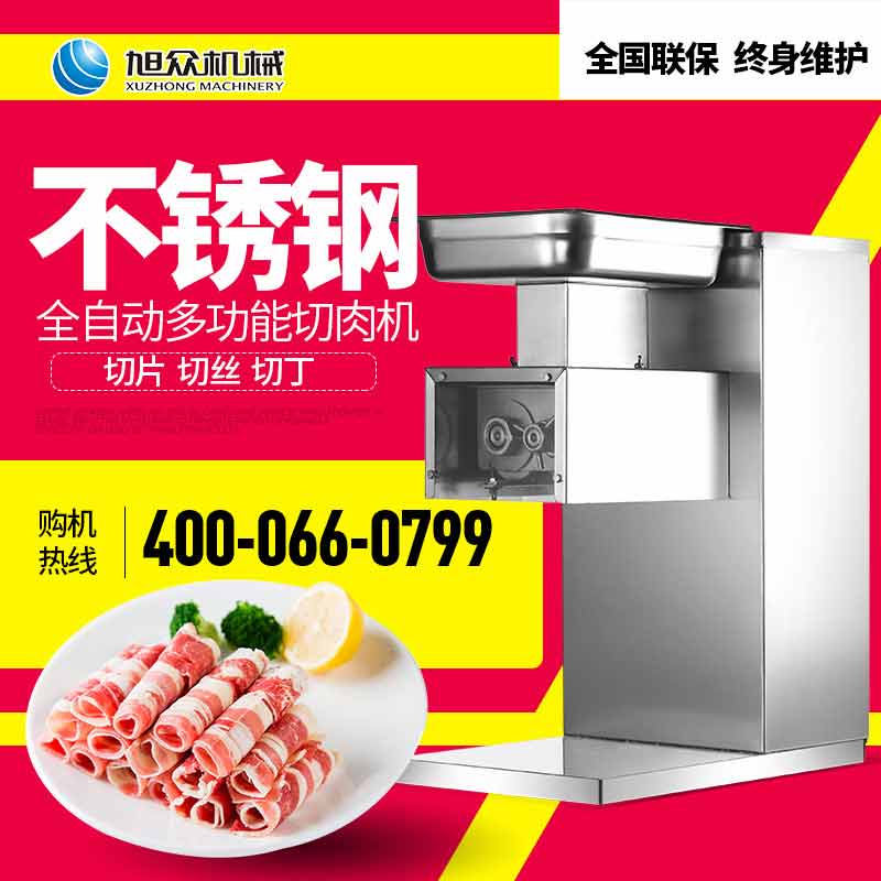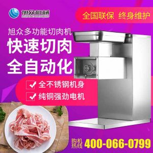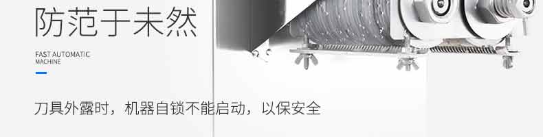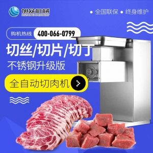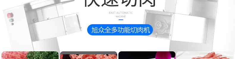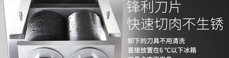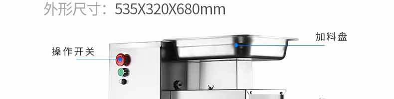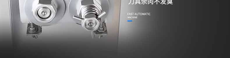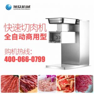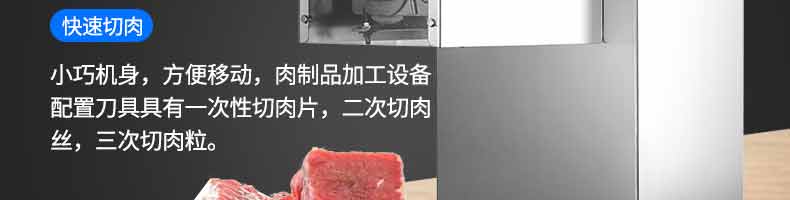 XZ-QX320-切肉機,小型切肉機是一款主要對肉類進行加工的設備,配置單層刀具一次性切肉片,二次切肉絲,再切成料。刀具采取外置懸臂式設計,拆洗方便,衛生更有保障;配置多種刀具,可加工不同厚度的肉片,實現一機多用;機內裝有安全保護開頭,刀具外露時,機器自鎖不能啟動,以保安全;卸下的刀具,不用清洗直接放置在6攝氏度以下的冰箱里,刀具余肉不發臭。刀片用特殊不銹鋼材料制造,經久耐用。