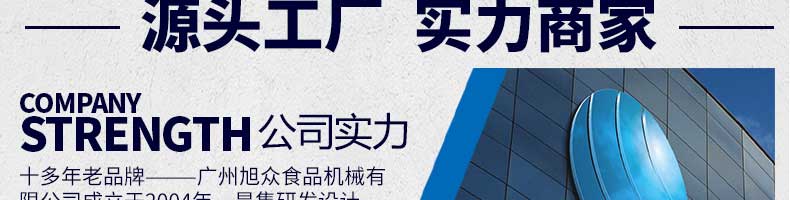 廣州旭眾食品機械有限公司是一家集科研開發,生產設計,營銷服務為一體的現代化生產企業。現代化生產車間,精湛制造技術,所產機械歷經市場重重考驗,不斷贏得海內外客戶的贊譽。