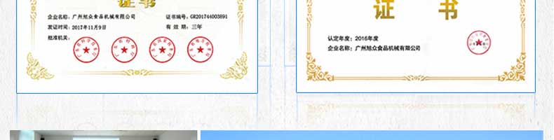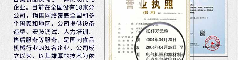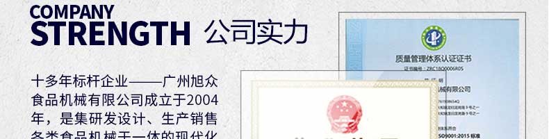 廣州旭眾食品機械有限公司是一家集科研開發,生產設計,營銷服務為一體的現代化生產企業。現代化生產車間,精湛制造技術,所產機械歷經市場重重考驗,不斷贏得海內外客戶的贊譽。