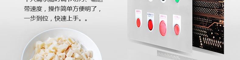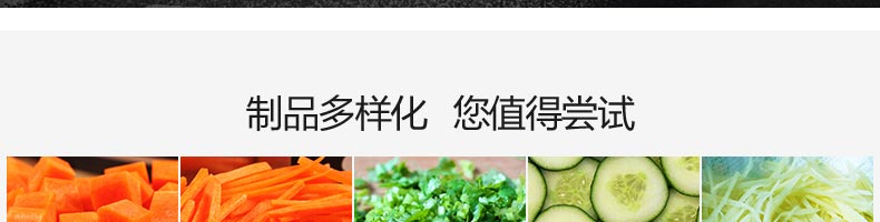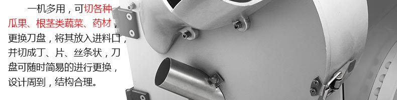XZ-680A多功能切菜機,一機多用,可切葉菜及根莖類蔬菜,并可切片、絲、條、丁、段,碎等,切菜規格可根據不同需要調節尺寸,方便快捷。隨機共配送三套刀具。