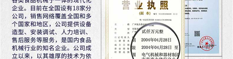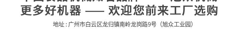 廣州旭眾食品機械有限公司是一家集科研開發(fā),生產(chǎn)設計,營銷服務為一體的現(xiàn)代化生產(chǎn)企業(yè)。現(xiàn)代化生產(chǎn)車間,精湛制造技術(shù),所產(chǎn)機械歷經(jīng)市場重重考驗,不斷贏得海內(nèi)外客戶的贊譽。