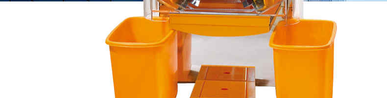 2000E-4自動榨橙汁機,該機設計合理,采取擠壓式,鮮橙經消毒、漂洗后,直接進入機器 ,自動剝皮、榨汁、過濾,現榨現飲,不僅適用于小飲店、水果店、飯店、賓館、酒吧、卡廳、茶秀、咖啡屋等,也適用于成功人士的家庭使用。