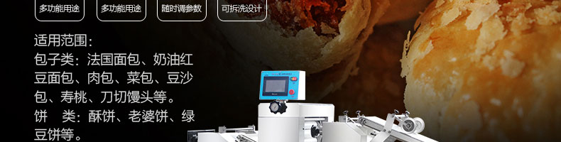 xz-15c三道搟面酥餅機,仿手工制作面食產品的機型,占地面積小,重量輕,運用搟面杖壓面和打擊面團,以保證高面筋性和面帶的密度,并綜合考慮面食的口感而研發。可生產東北糖酥餅,東北大香酥餅,蘇式月餅,芝麻餅,鮮花餅,老婆餅。購機免費提供工藝技術