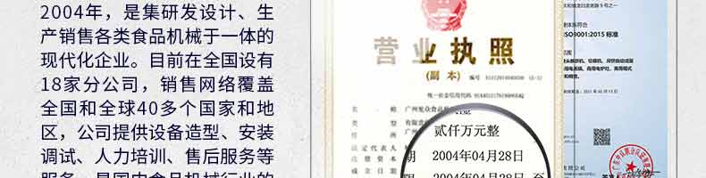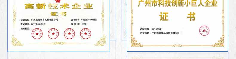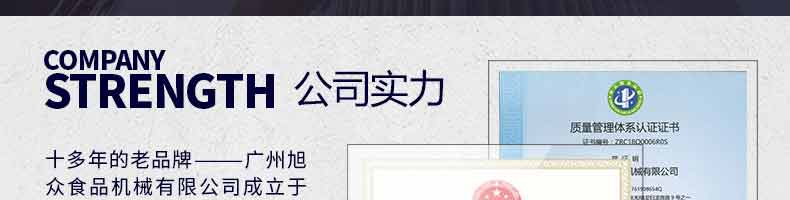 廣州旭眾食品機械有限公司是一家集科研開發(fā),生產(chǎn)設計,營銷服務為一體的現(xiàn)代化生產(chǎn)企業(yè)。現(xiàn)代化生產(chǎn)車間,精湛制造技術(shù),所產(chǎn)機械歷經(jīng)市場重重考驗,不斷贏得海內(nèi)外客戶的贊譽。
