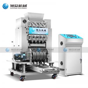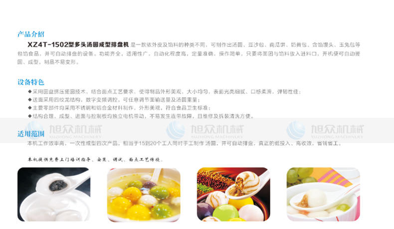 XZ4T -1502多頭湯圓成型排盤機(jī),湯圓機(jī),本機(jī)只要將面團(tuán)放入進(jìn)料口,開機(jī)便可自動(dòng)搓圓、成型的設(shè)備,一次性成型四次產(chǎn)品,制品不易變形,工作效率高