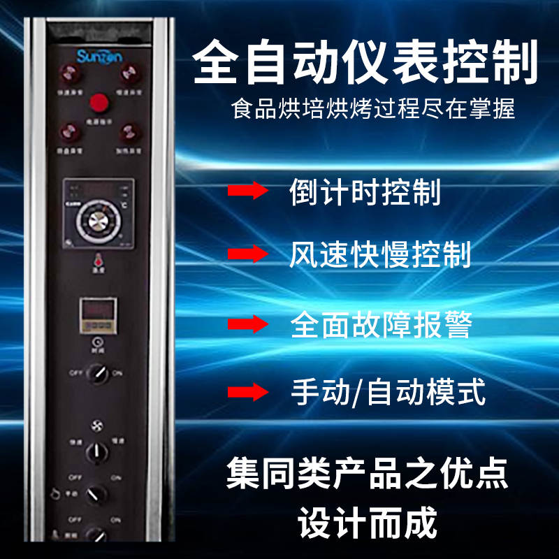 XZ-32-32層旋轉烤爐,360°熱風環流系統立體熱風循環,加熱更高效,食品成色更誘人。全自動儀表控制,食品烘培烘烤過程盡在掌握。倒計時控制、風速快慢控制、全面障報警。